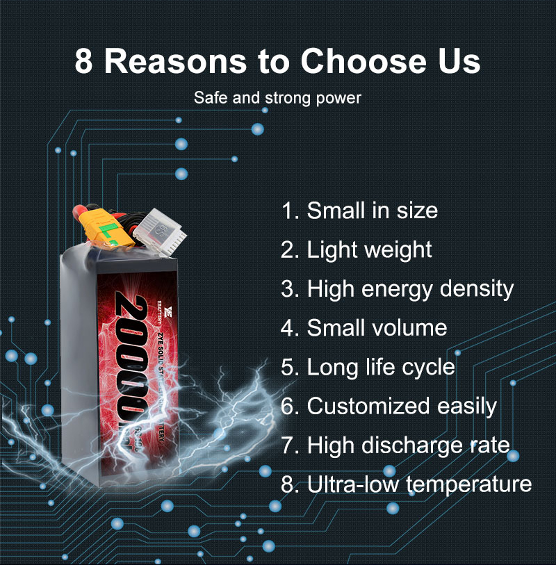 Atención al cliente: servicio de preescones y posventa 24/7, asegurando que obtenga el mejor soporte para suLipo Battery 20000MAH 22000MAH 3S4S6S 20C 25C Alta tasa de descarga Batería Lipo Batteries.