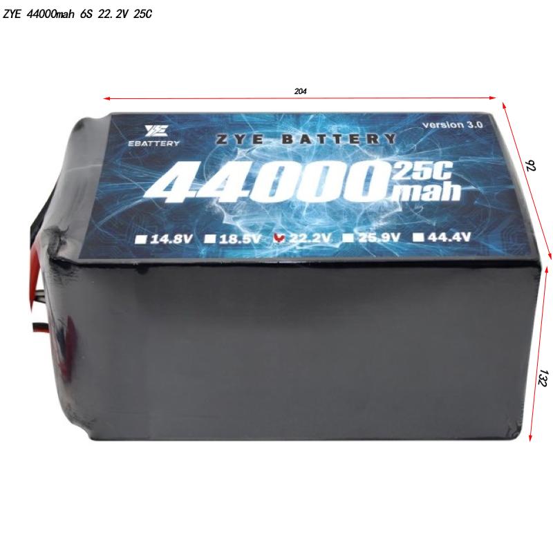 | 44000 mAh | 6S1P (22.2V) | 4990g (± 10g) | 204*92*132 mm | 976.8wh | 25c 1100a | 50C 2200A |
