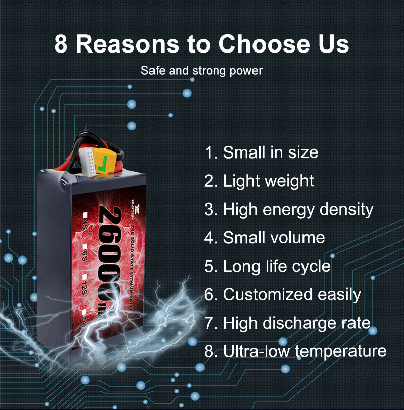 Tecnología de vanguardia: nuestras baterías de estado sólido representan los últimos avances en tecnología de baterías, que ofrecen un rendimiento y seguridad superiores, incluidaAlta densidad de energía 22AH 20AH 22000MAH 10C 20C Batería de iones de litio de estado sólido para drones de largo alcance drones.