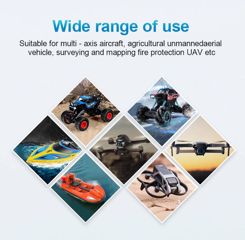 R: Adecuado para drones, vehículos RC, botes no tripulados, equipos médicos y sistemas de almacenamiento de energía.
