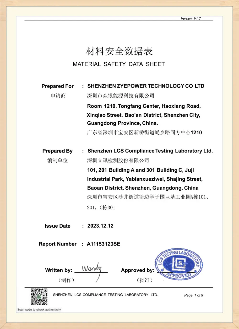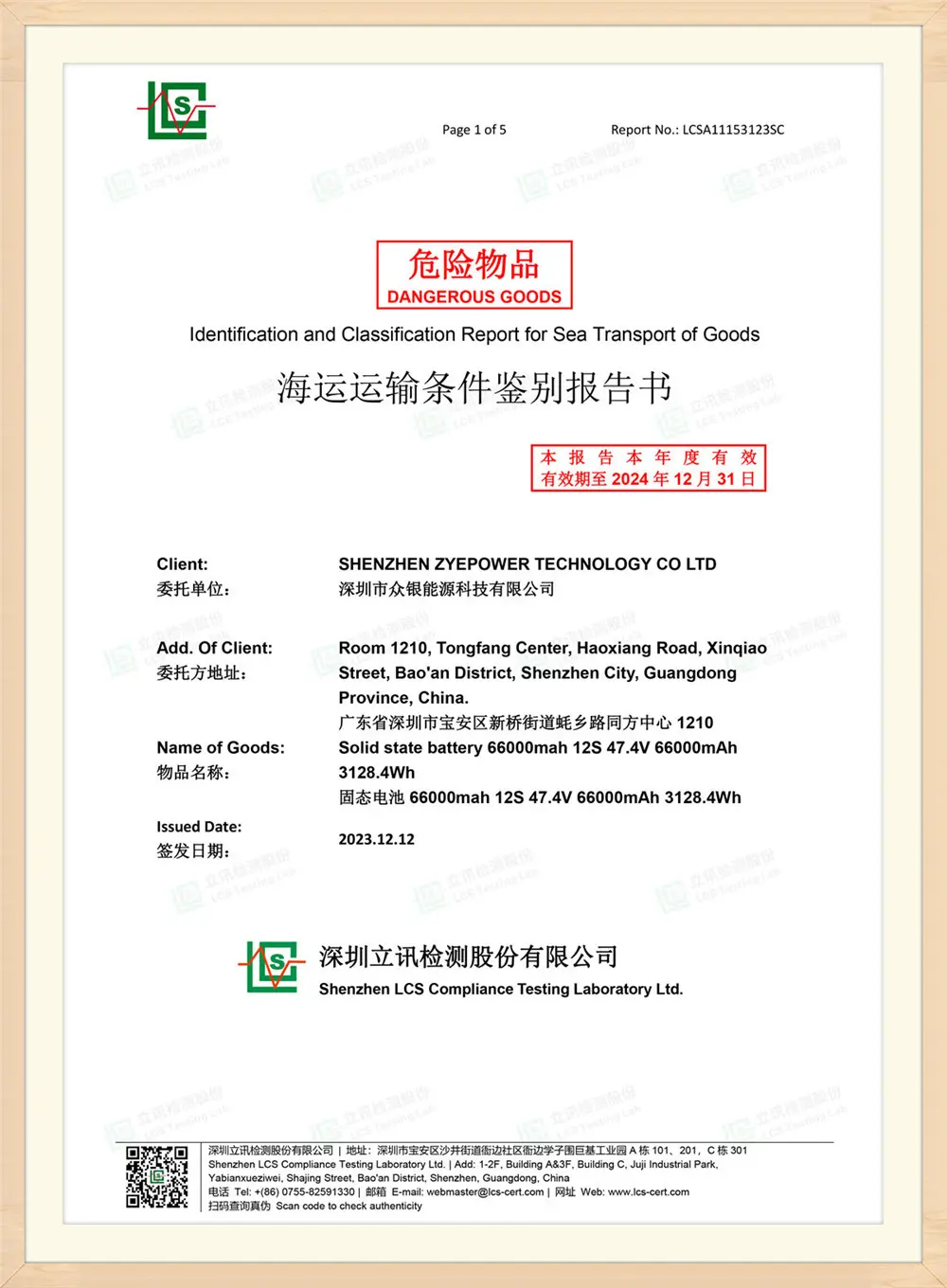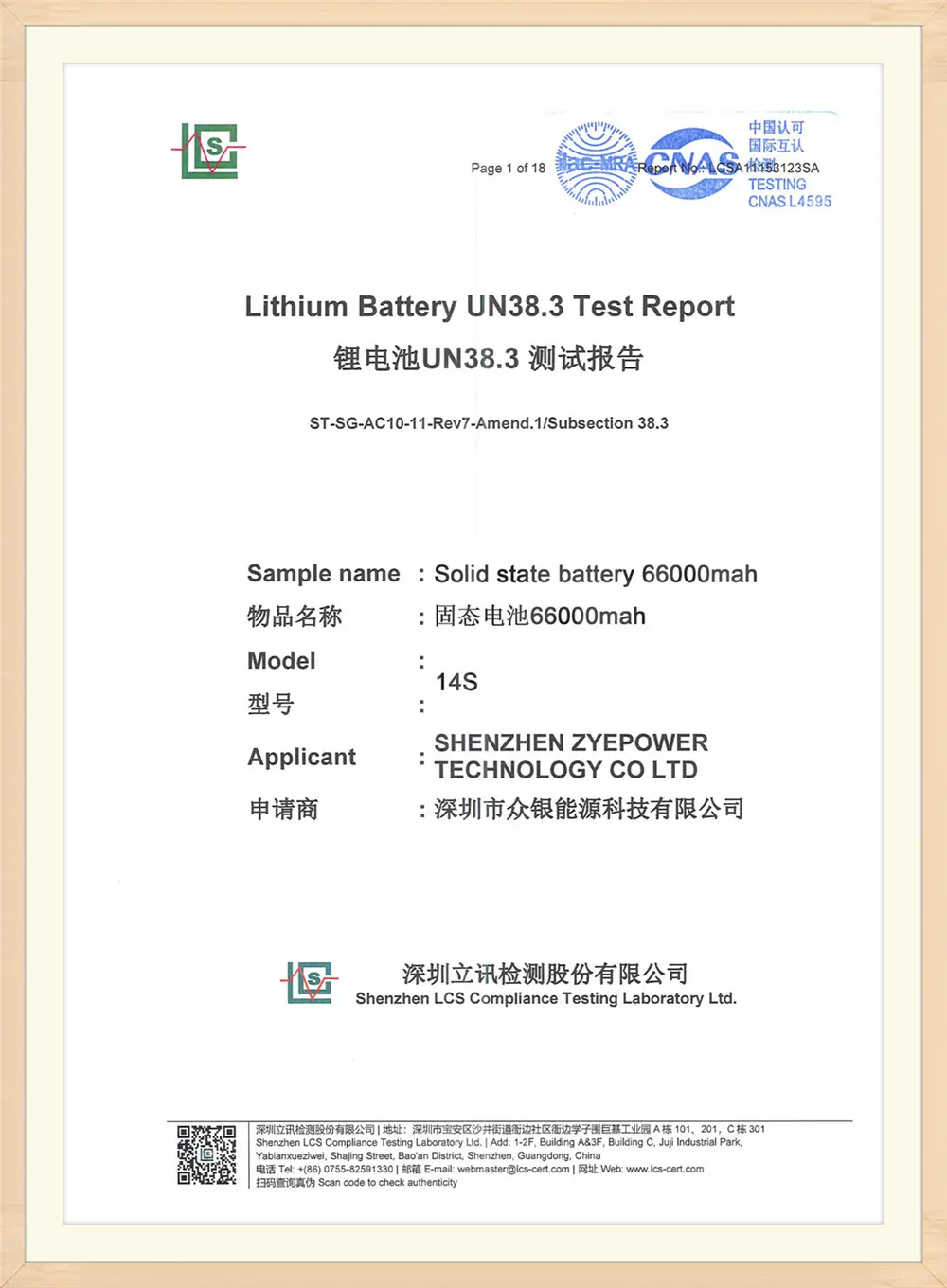 ZyebatteySiempre persigue la filosofía comercial de "calidad primero, orientada al servicio, promesas de mantenimiento de la integridad". Para ser el mejor y más estable proveedor de baterías, proporcionamos tecnología de batería recargable de alta calidad y Zyebattey ha aprobado muchas certificaciones de autoridad, como ISO9001: 2015, UL, CE, FCC, UN, 3C, etc.
